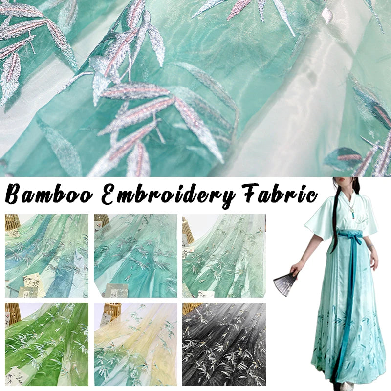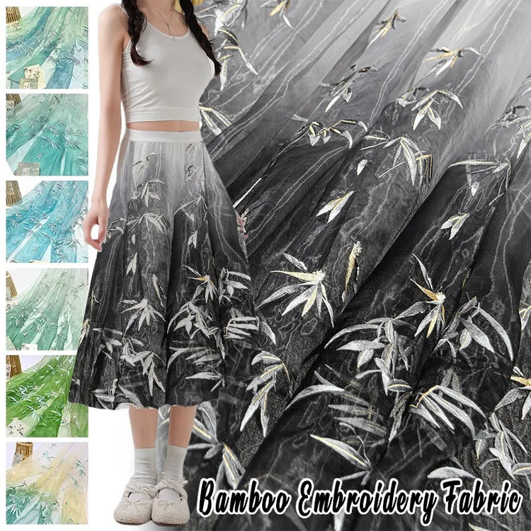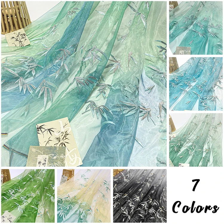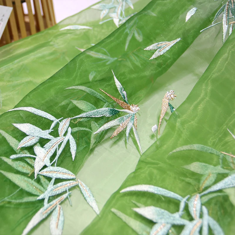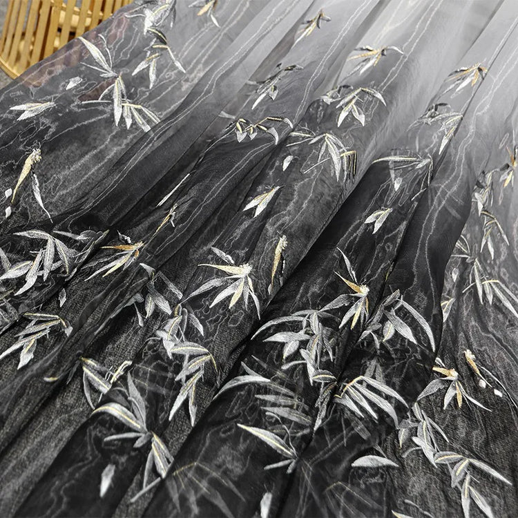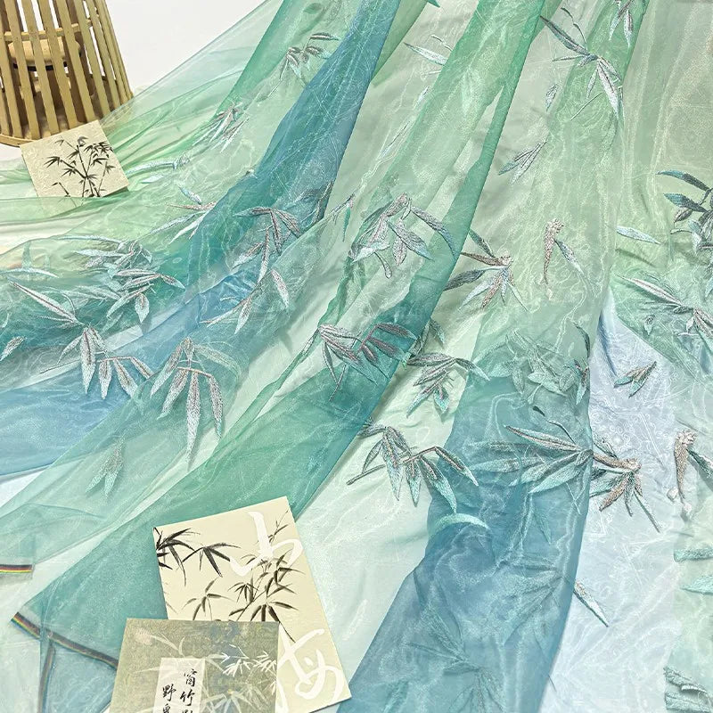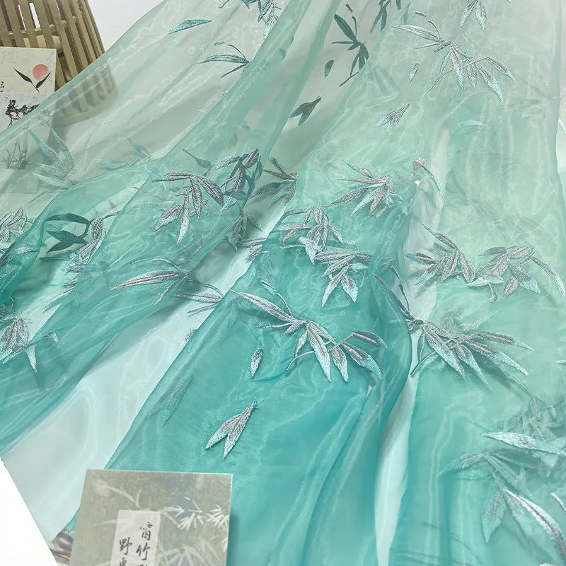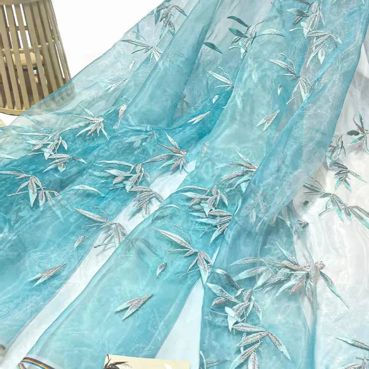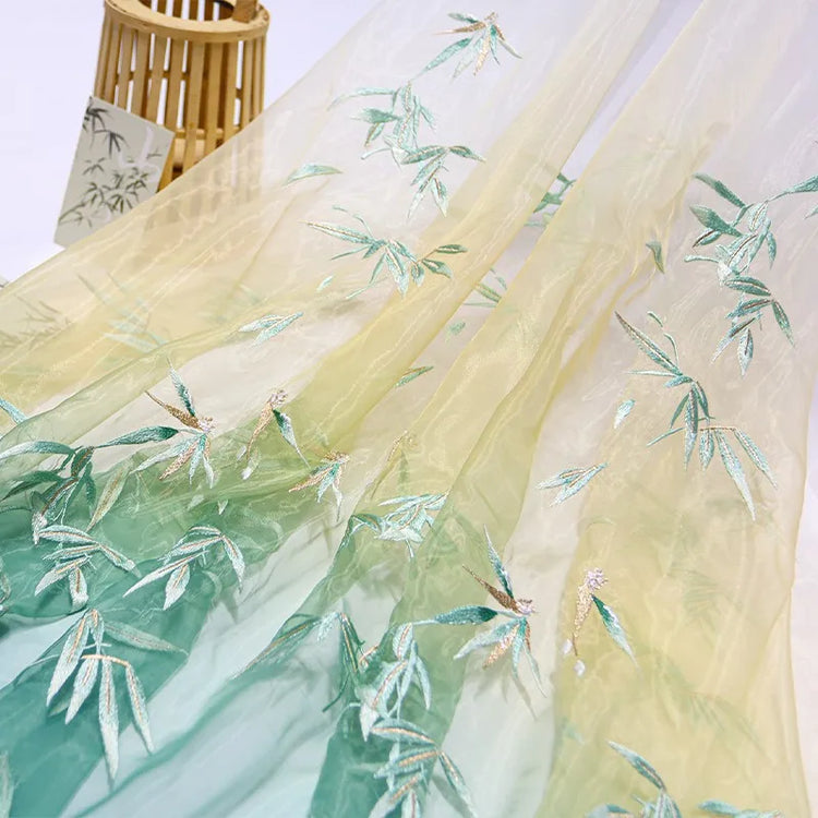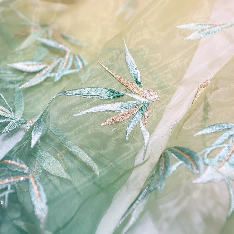 Embroidered Chiffon Fabric with Bamboo Leaf Print